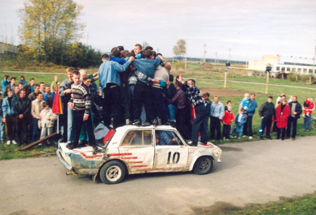 Daugiausia žmonių, važiavusių lengvuoju automobiliu – 55 keleiviai ir vairuotojas (perkrovimas – 11 kartų). Tai 20 sportininkų „VAZ 2105“ markės automobilio viduje ir 35 ant jo stogo, bagažinės ir variklio dangčio nuvažiavo 1 km per Vilkijos (Kauno r.) žemės ūkio mokykloje surengtas pirmąsias Lietuvoje traktorių slalomo varžybas laikraščio „Ūkininko patarėjas“ taurei ir piniginiams prizams laimėti 1995 m