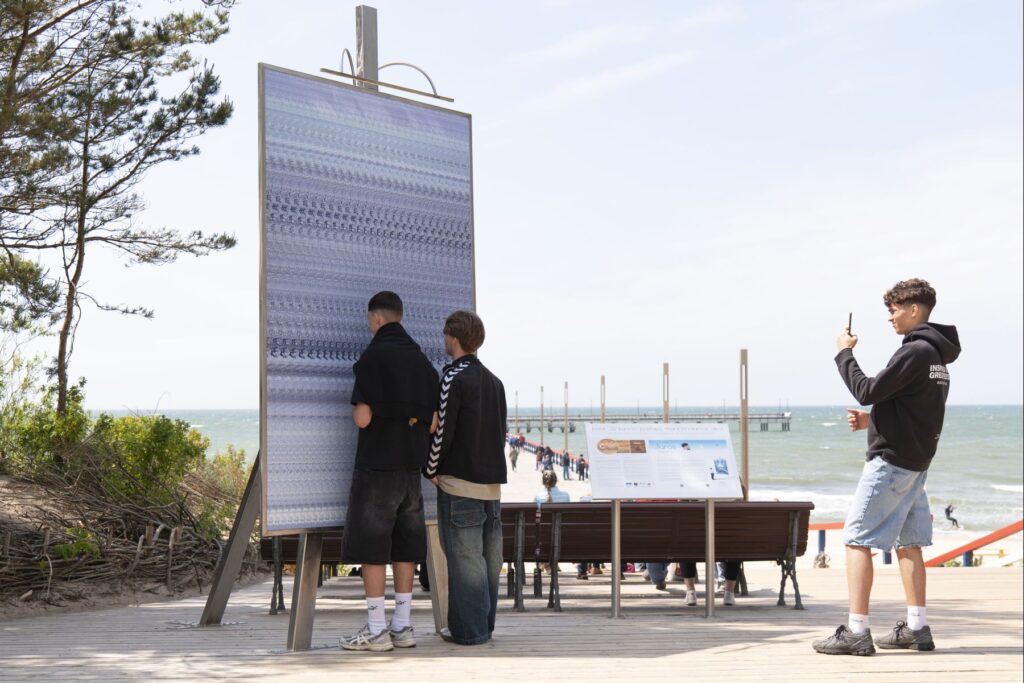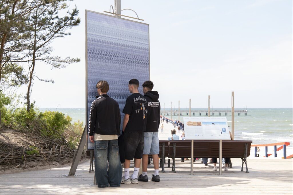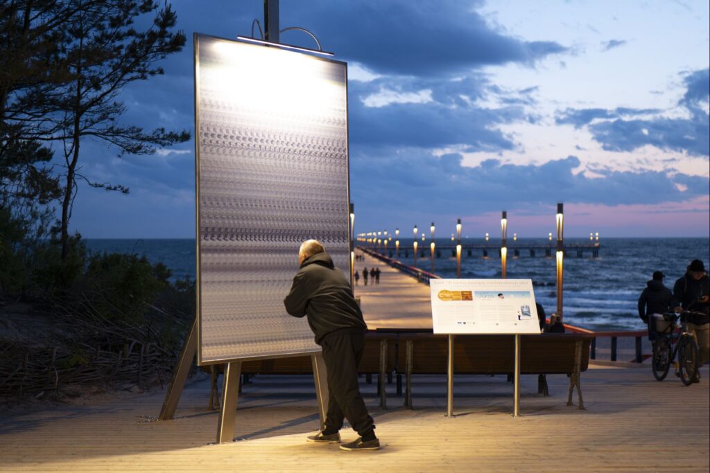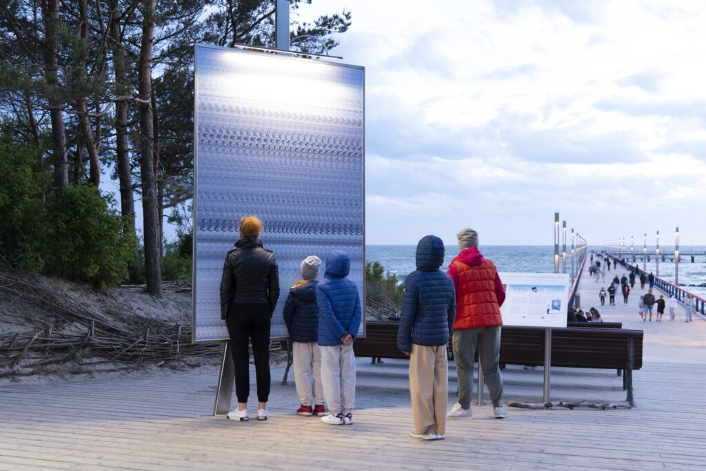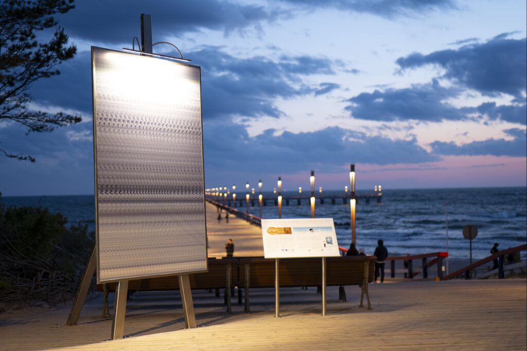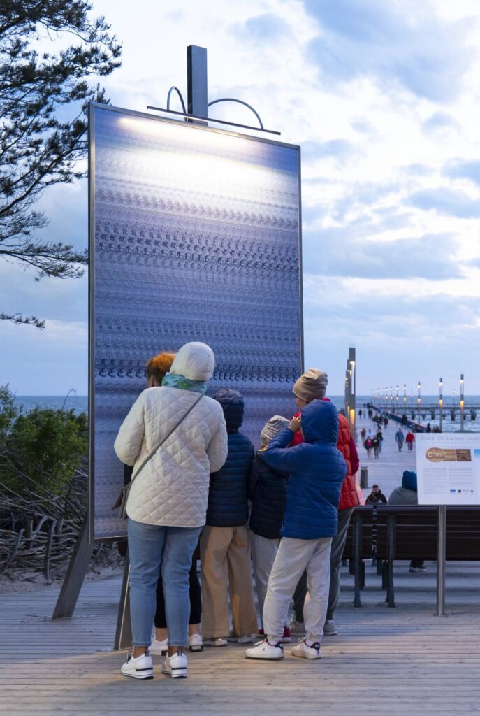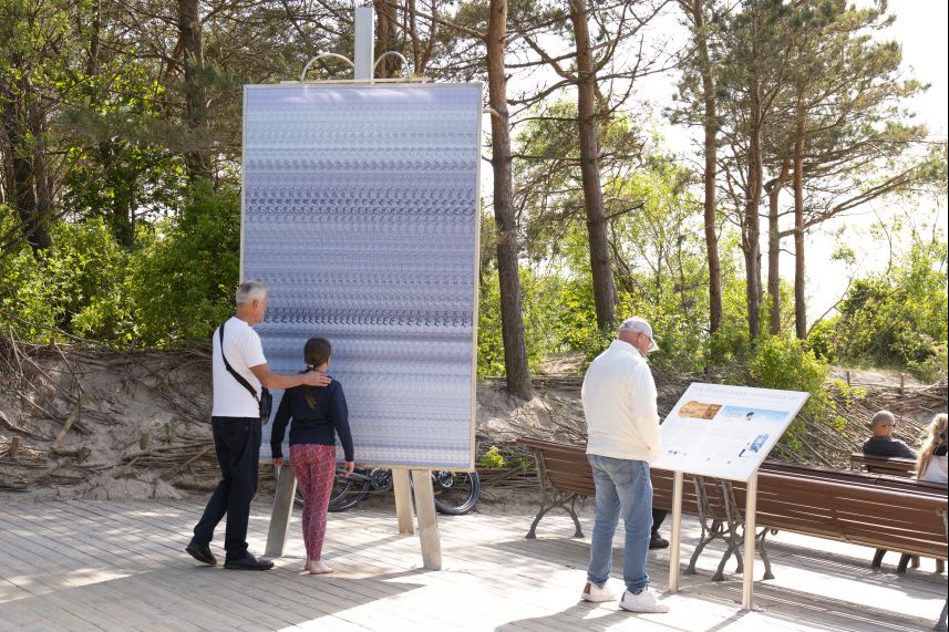 Greta kūrinio yra paaiškinamasis stovas su aprašymu kaip tinkamai įžvelgti erdvinį vaizdą, bei pateikta M. K. Čiurlionio poema „Jūra“, papildanti meninį pasakojimą.
