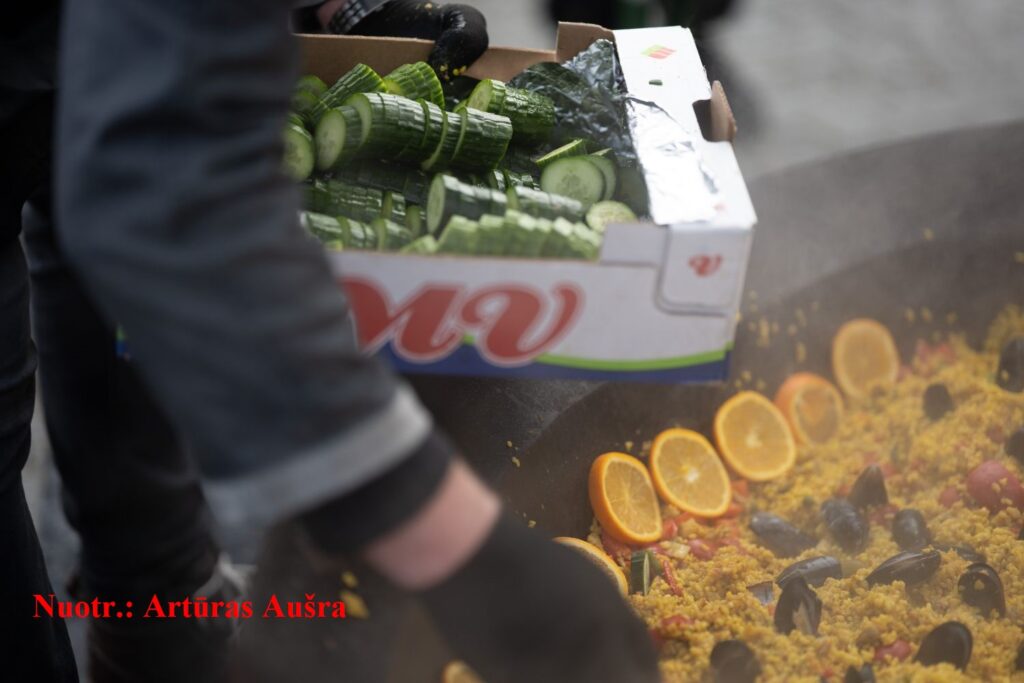 Paelijai iškepti prireikė keptuvės, 45 l žuvies sultinio, sunaudota 25 kg apvaliųjų ryžių, 12 kg menkės filė, 10 kg jūros gėrybių mišinio, 7,5 kg šaldytų daržovių, 5 l aliejaus, po 5 kg agurkų, apelsinų, midijų, paprikos, 2 kg stintų ir įvairių prieskonių.