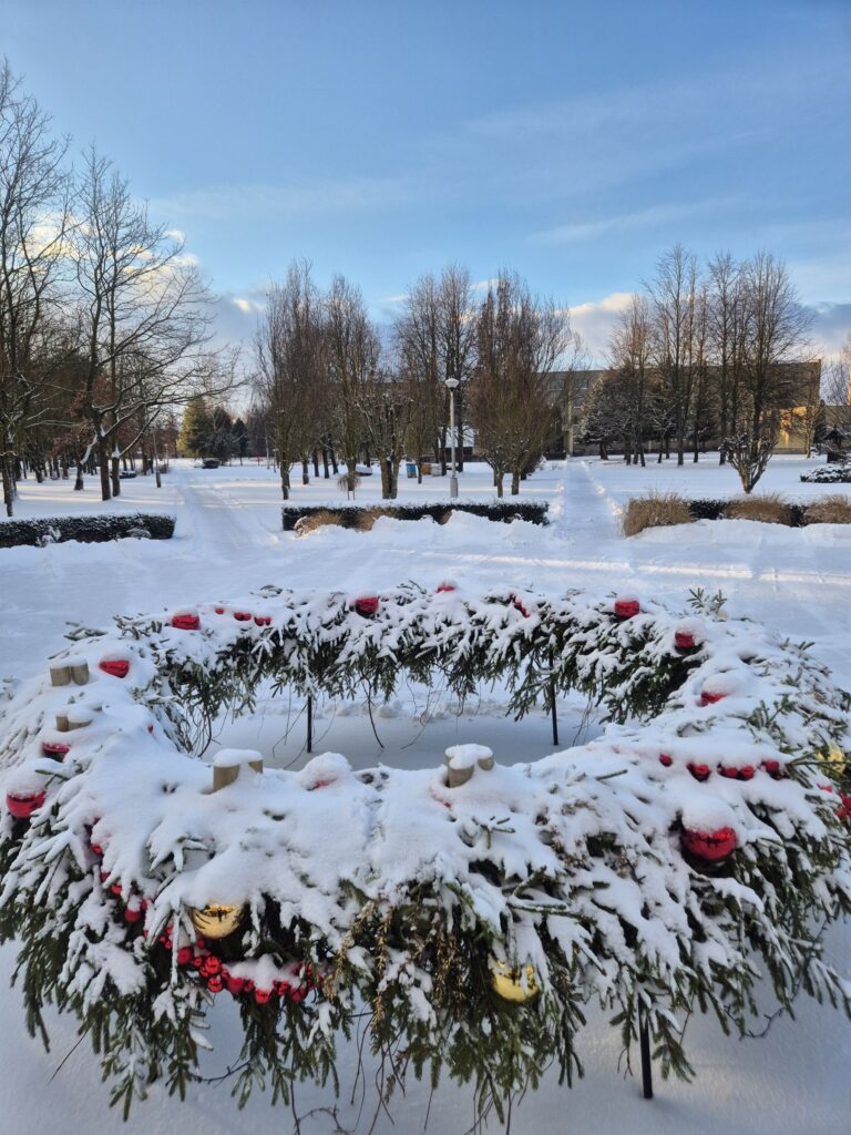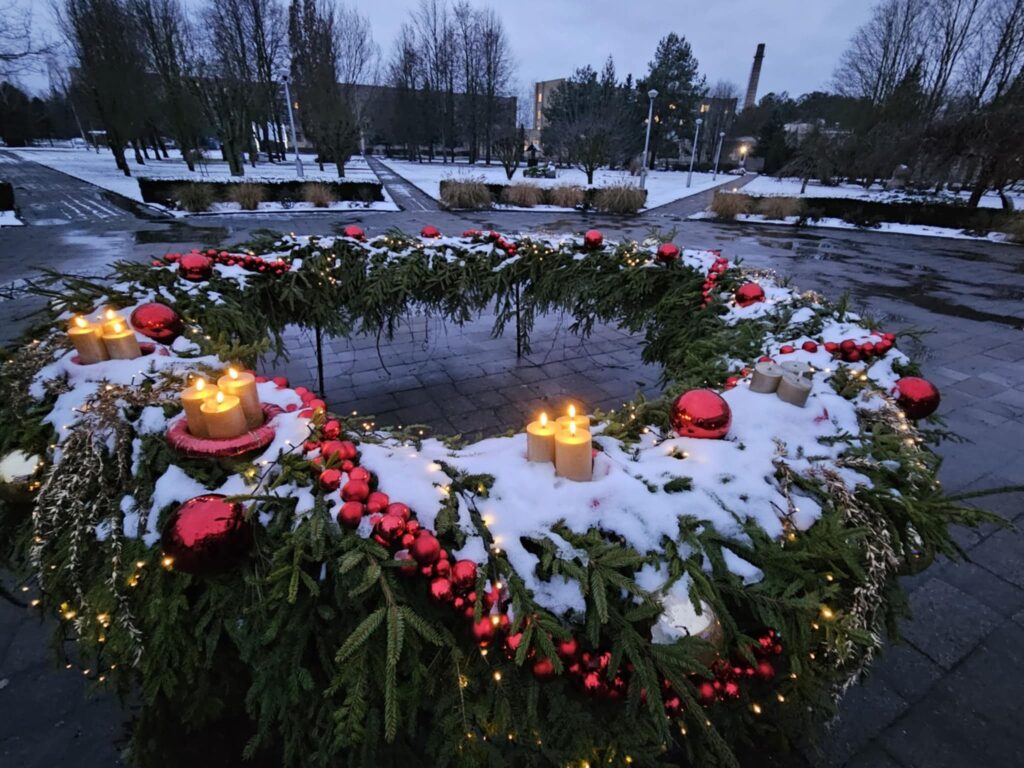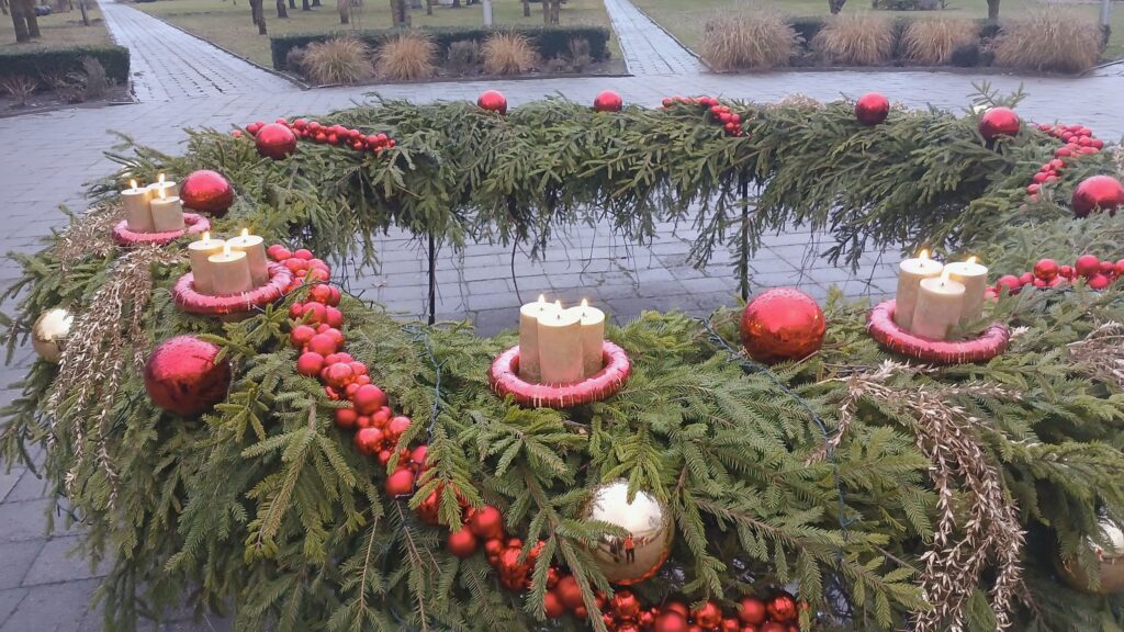 Šis vainikas Joniškio žemės ūkio mokyklos aikštėje, puošė miesto viešąją erdvę ir telkė mokyklos bei miesto bendruomenę Advento laikotarpiu.