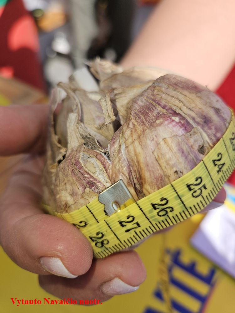 Didžiausias česnakas – 152 g masės, 26 cm ropelės apimties – išaugintas vilnietės Romos Baleišienės sodyboje šalia Žaliųjų ežerų (Vilniaus m.) 2023 m. nenaudojant cheminių trąšų, nugalėjęs „Savaitės“ leidybos grupės žurnalo „Namie ir sode“ bei asociacijos „Šventė visiems“ surengtose varžytuvėse XV-ojoje Tautų mugėje Vilniuje.