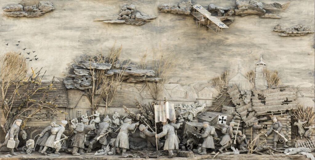 Didžiausias drožinys-paveikslas – 3 m ilgio, 1,5 m aukščio, 30 cm erdvinio gylio – panoraminis batalinis horeljefas „1919. Radviliškio kautynės“, sukurtas radviliškiečio tautodailininkoEdmundo Gaubo 2019 m. Jis skirtas Lietuvos kariuomenės pergalės prieš bermontininkus 100 metų sukakčiai paminėti. Drožinyje-paveiksle yra 36 kautynių dalyvių išdrožti atvaizdai, iš jų 16 skulptūriniai.