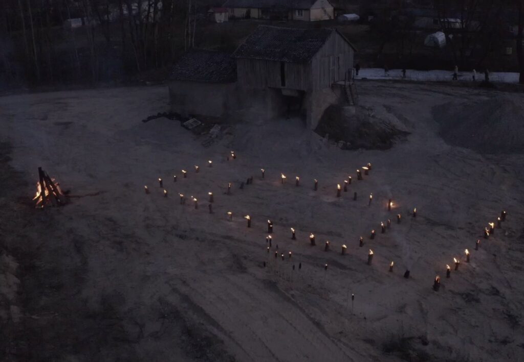 Didžiausias iš laužų sudarytas Gediminaičių stulpų