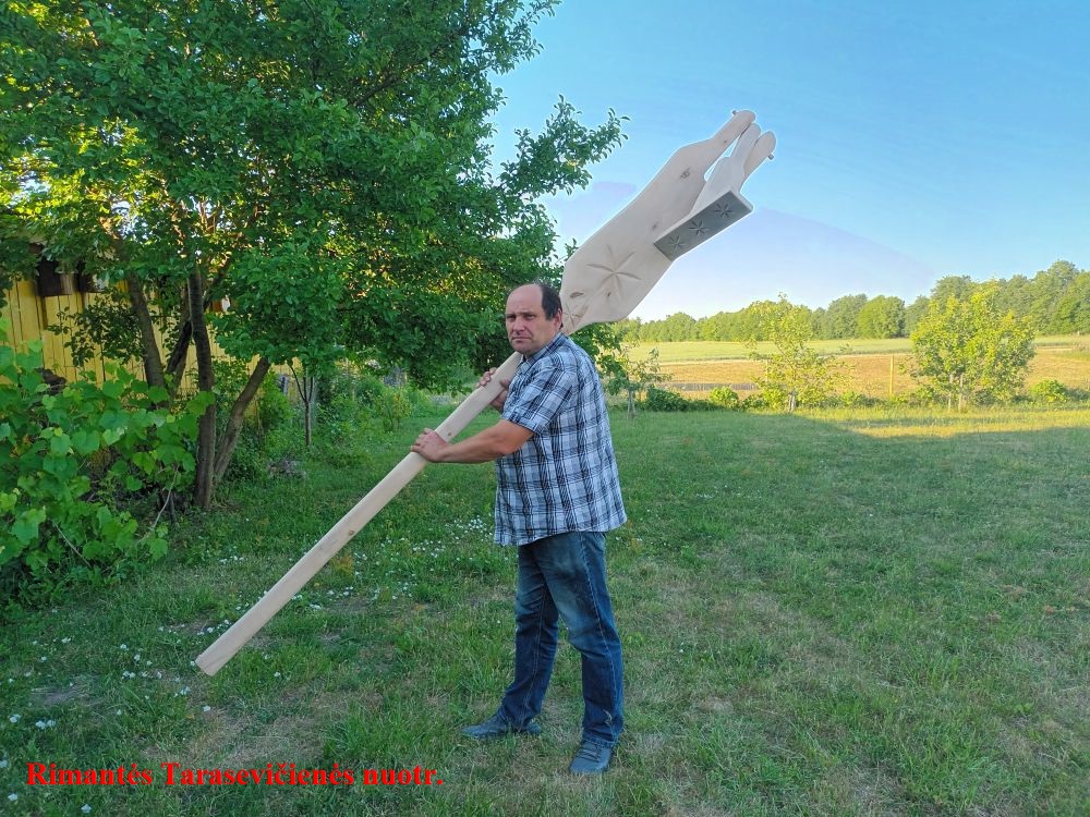 Didžiausias kleketas – 3,15 m aukščio, 29 cm pločio – padarytas tautodailininko Artūro Narkevičiaus iš beržo medienos 2023 m.