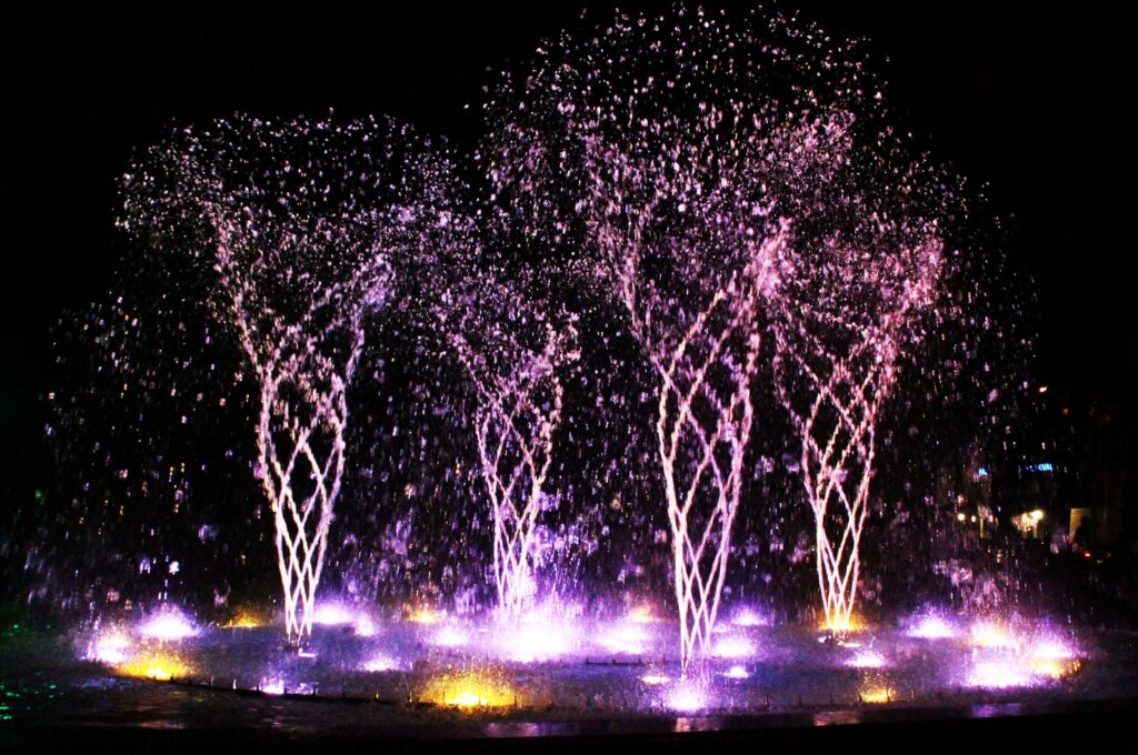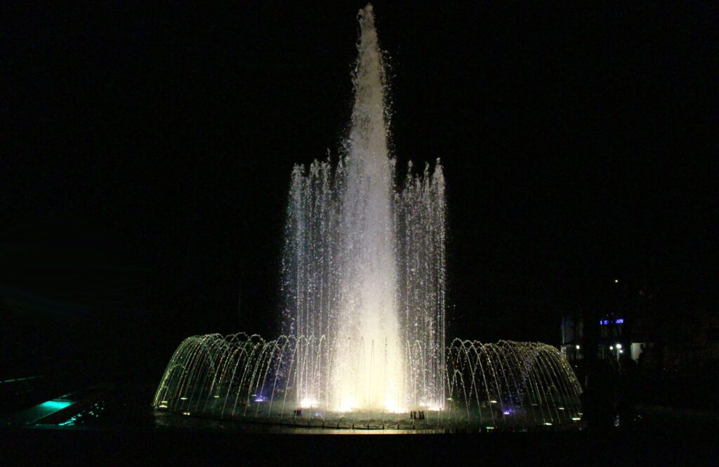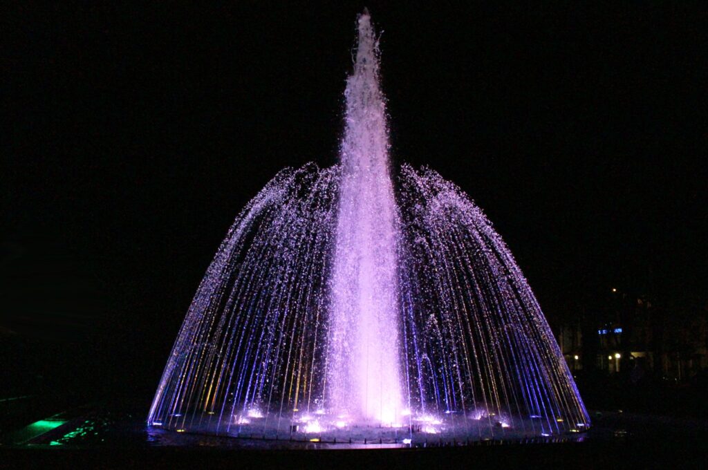 Didžiausias šokantis muzikinis fontanas – 260 purkštukų, 48 įvairių spalvų šviestuvų – sumontuotas Palangoje 2015 m. birželį. Priklausomai nuo pasirinkto muzikos kūrinio keičiamas vandens čiurkšlių aukštis, kryptis ir apšvietimas. Po fontano baseinu sumontuoti 5 siurbliai pagrindinę čiurkšlę išstumiantys į 8 m aukštį, o per 1 min. gali į orą pakelti beveik 4,3 t vandens.