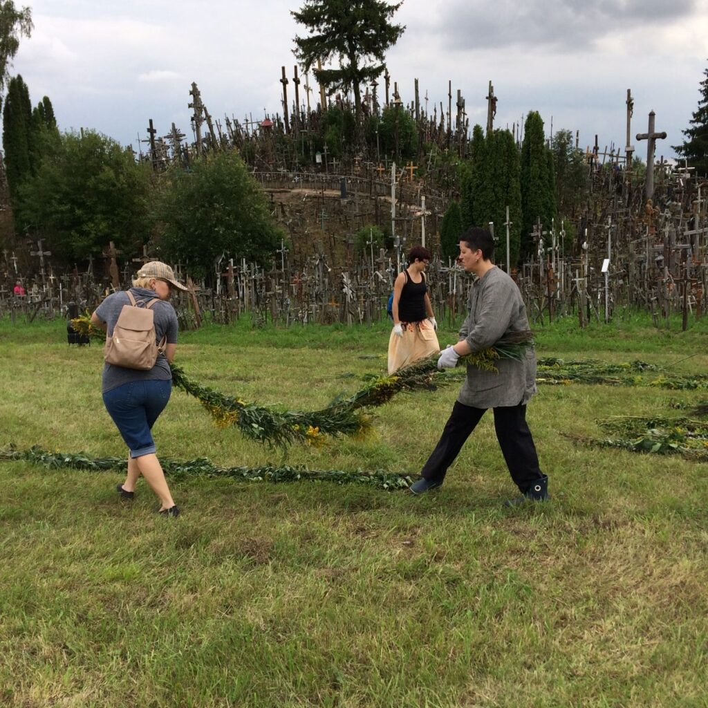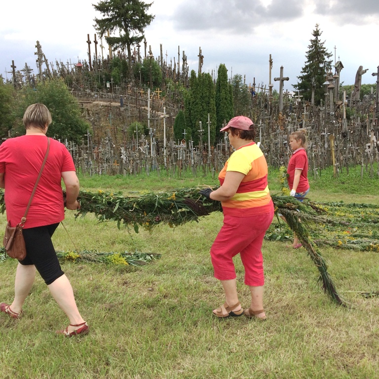 Didžiausias vainikas Šiaulių rajone – 351,25 m ilgio – supintas iš laukų žolynų ir hortenzijų septyniolikos Šiaulių profesinio rengimo centro pynėjų apjuosti Kryžių kalną (Šiaulių r.) 2016 m. liepos 30 d.