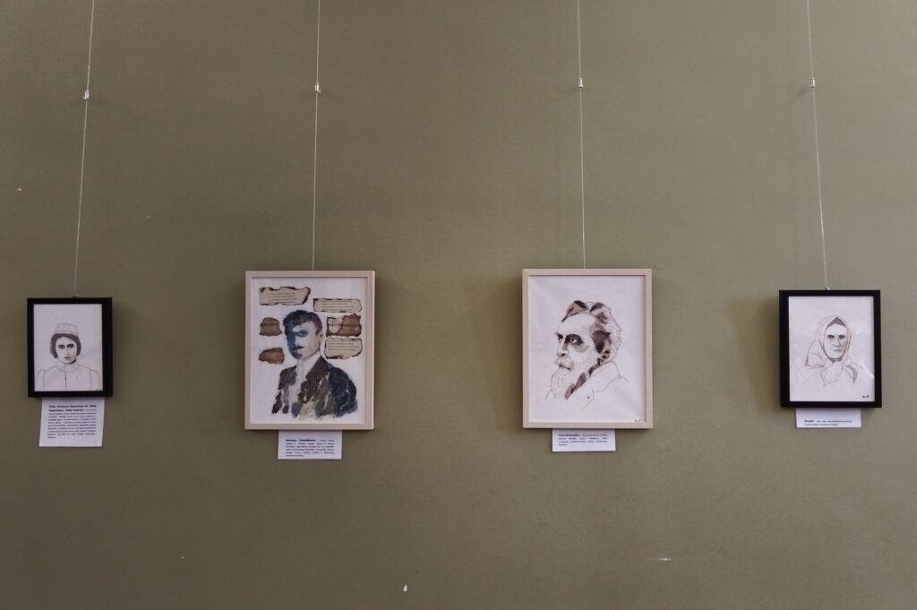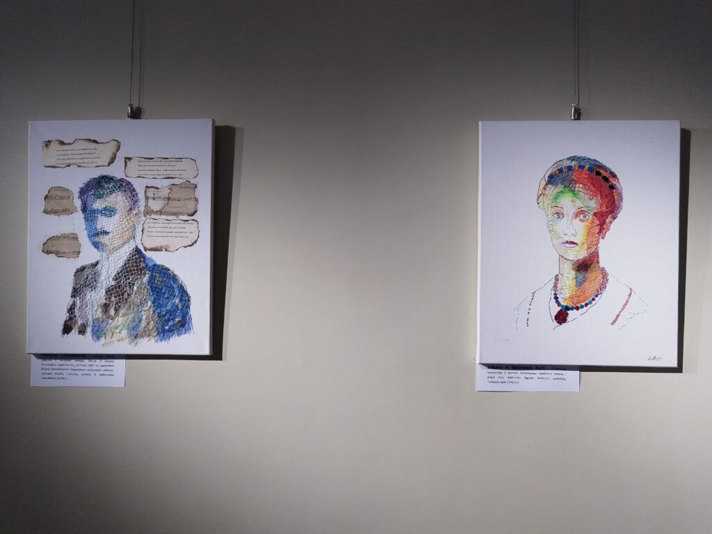 Kūriniai eksponuoti parodoje „Siuvinėti portretai“, atidarytoje Kauno kultūros centre 2026 m. kovo 3 d.