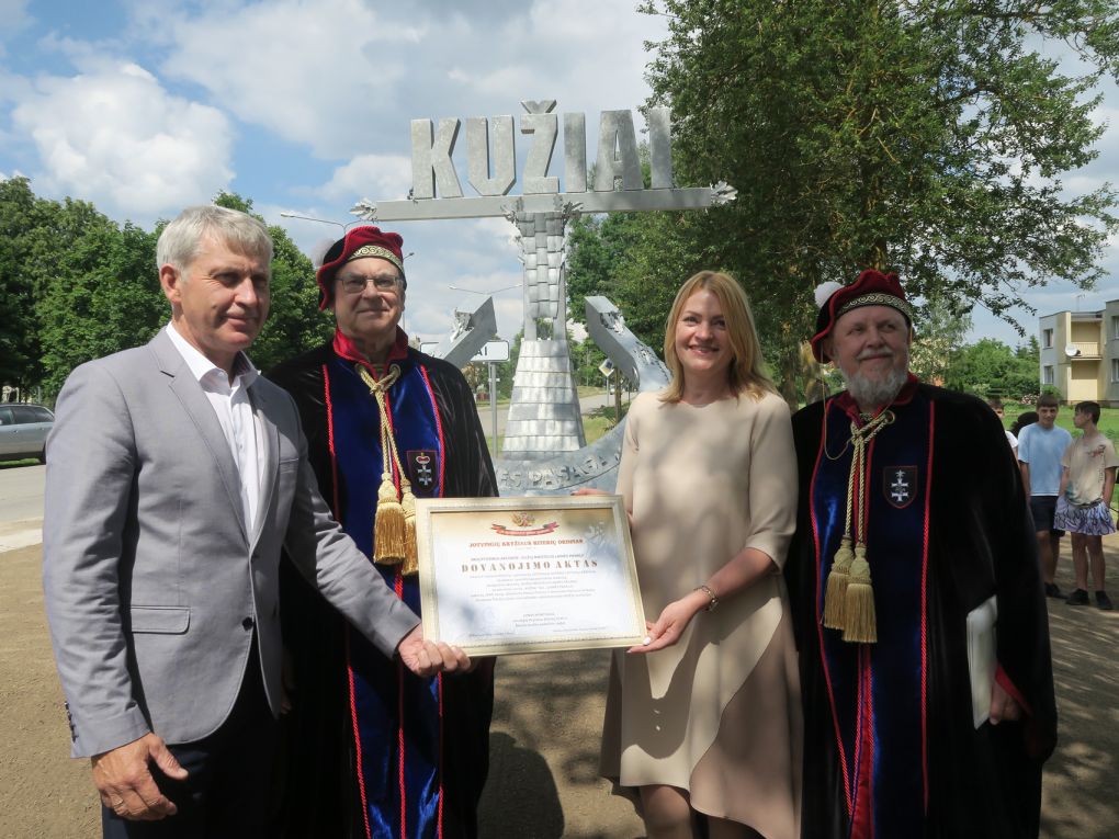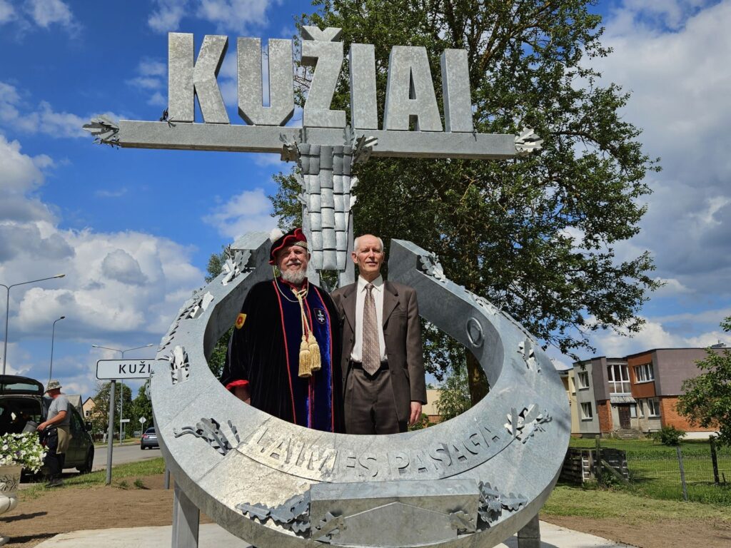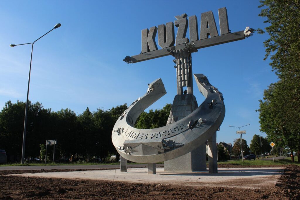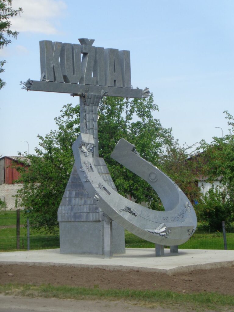 Riboženklyje „Kužiai“ slypi keli paslaptingi ženklai. Pagrindinis – didžioji pasaga su užrašu „Laimės pasaga“, kad visos pasagos bei aitvarai neštų laimę laimingų žmonių miestelin, kad šioje pasagoje fotografuotųsi tokie laimingi žmonės, kaip vestuvių dieną jaunavedžiai. Kitas paslaptingas ženklas – raidės „A“ ir „Ž“, esančios kitoje riboženklio pusėje. Pirma ir paskutine lietuviško raidyno raidės riboženklyje žymi aukštaičių ir žemaičių tarmių ribą, primindamos, kad nuo Kužių, į „A“ pusę plyti Aukštaitija, o į „Ž“ pusę – Žemaitija.