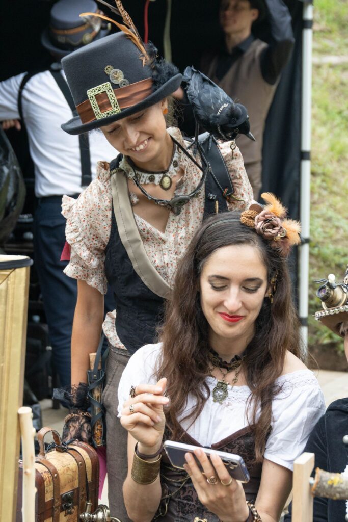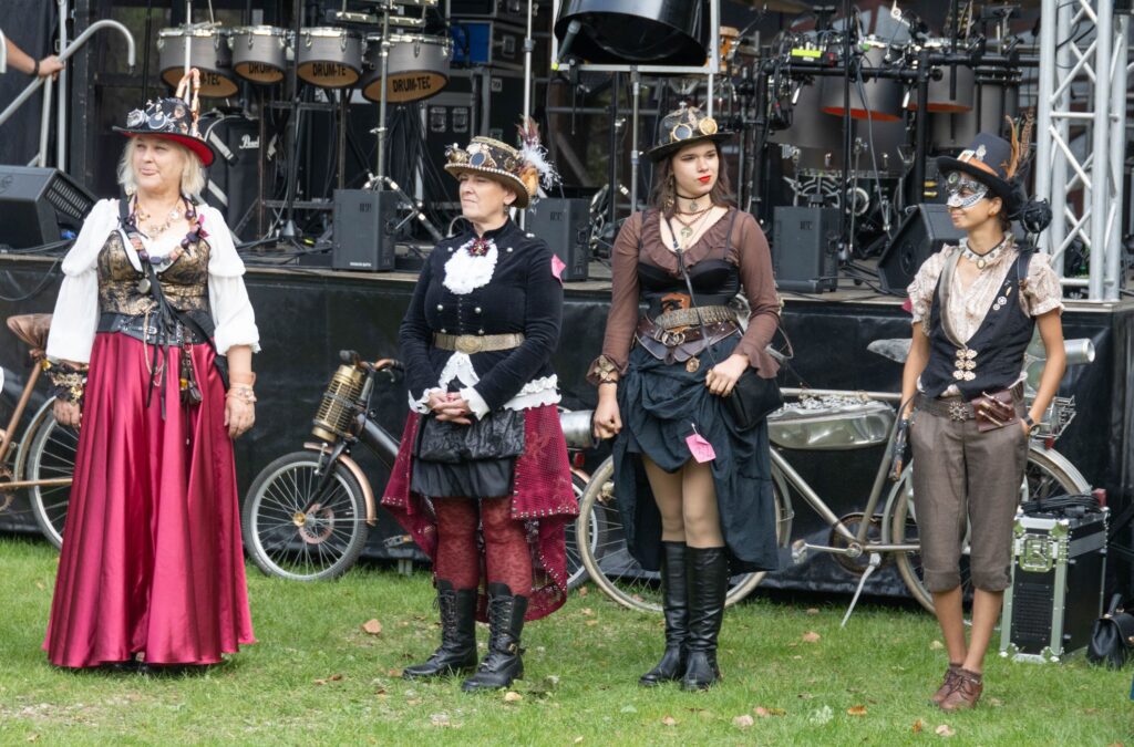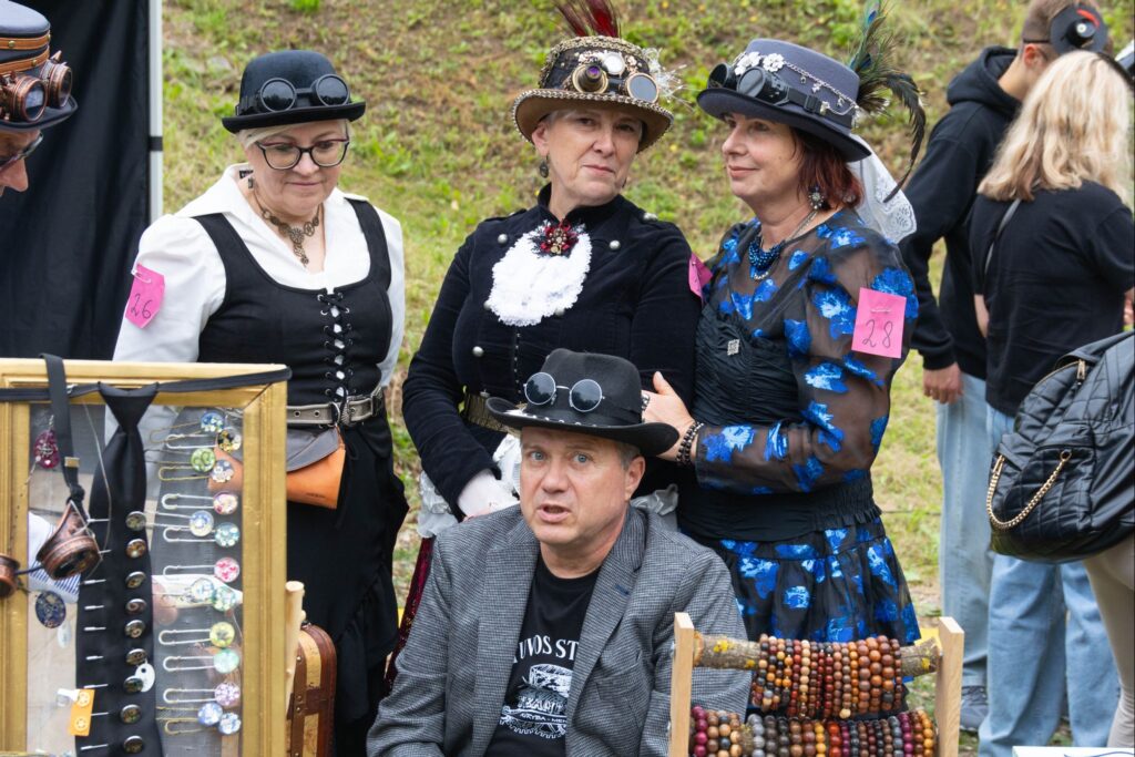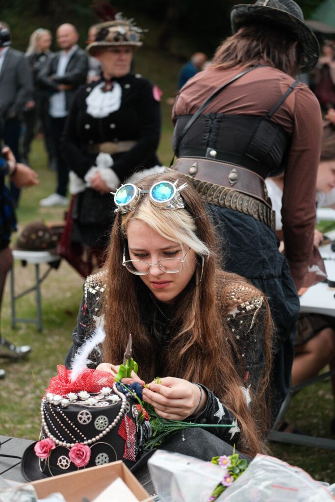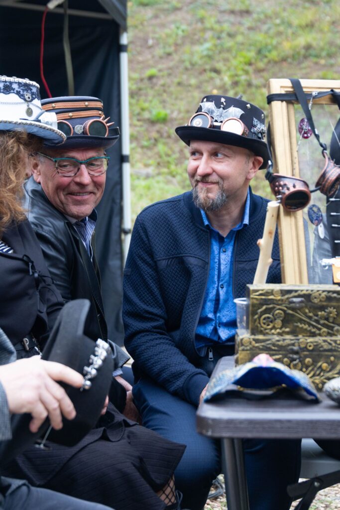 Atvykusius į šventę prie ištaigingų vartų pasitiko renginio šeimininkai ir neturintiems galvos puošmenų sudarė galimybę, padedami šios puošybos žinovams, vietoje pasigaminti skrybėlaitę, akinius ar apyrankę stimpankų stiliumi arba galėjo įsigyti menininkų kurtų stimpankų stiliaus dirbinių.