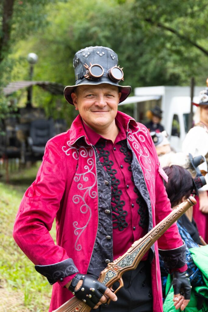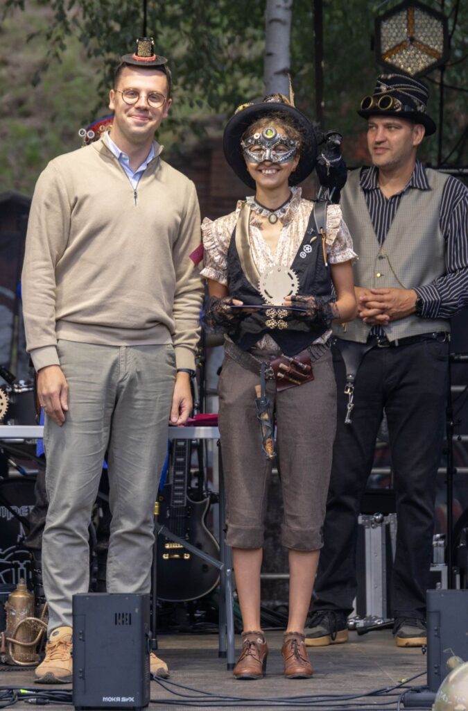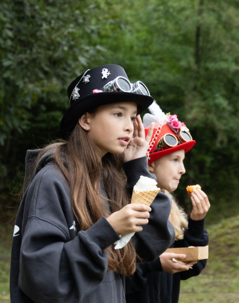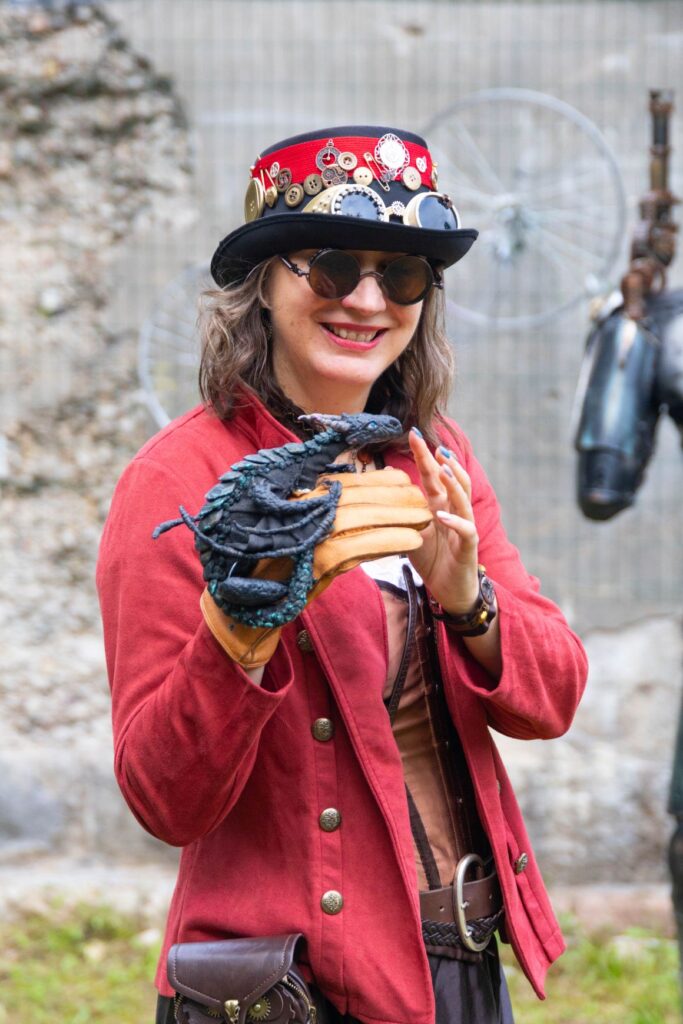 Atvykusius į šventę prie ištaigingų vartų pasitiko renginio šeimininkai ir neturintiems galvos puošmenų sudarė galimybę, padedami šios puošybos žinovams, vietoje pasigaminti skrybėlaitę, akinius ar apyrankę stimpankų stiliumi arba galėjo įsigyti menininkų kurtų stimpankų stiliaus dirbinių.