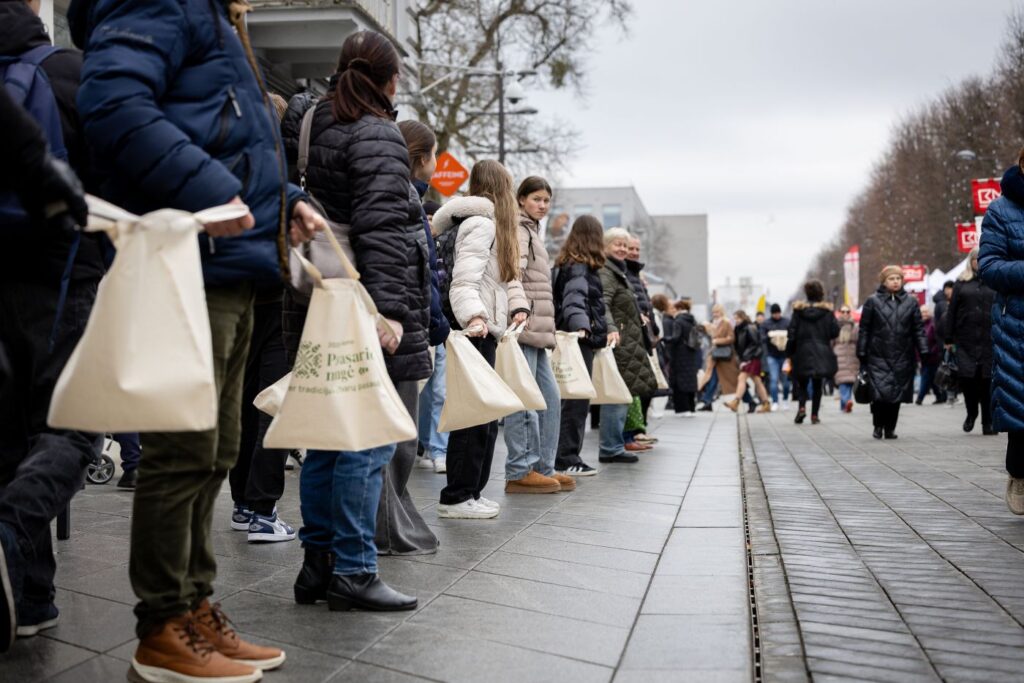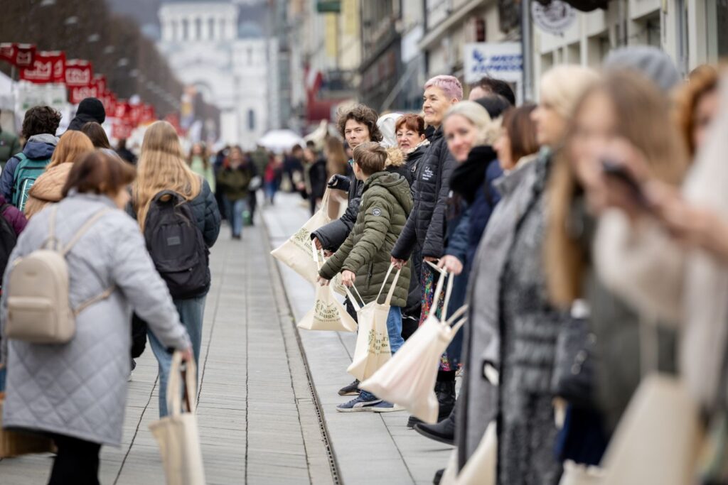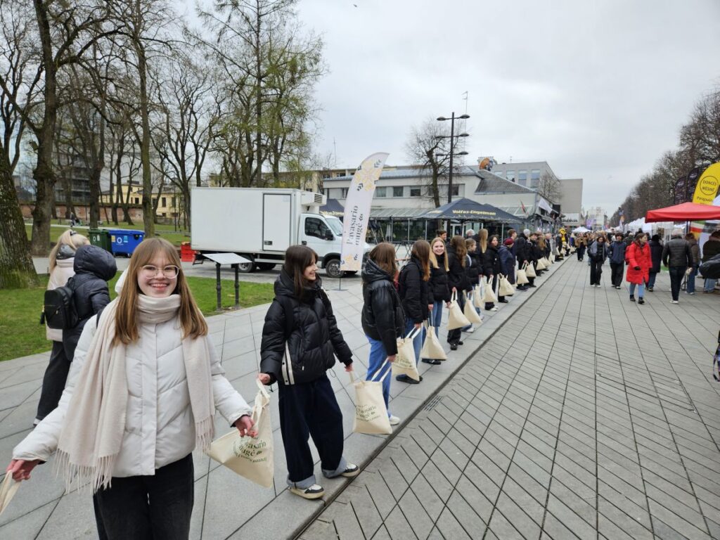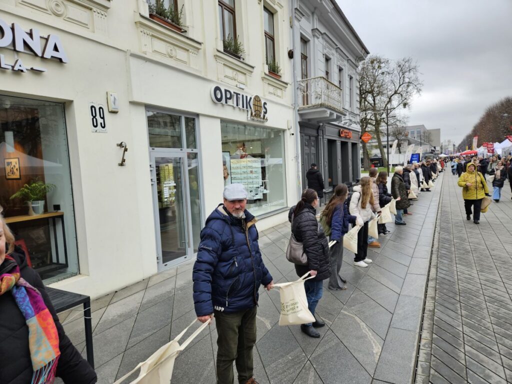 Ilgiausia daugkartinius maišelius laikančių žmonių eilė – 431 m ilgio eilė arba 449 žmonės išsirikiavo Kauno Laisvės alėjoje, pakvietus UAB „Mugių centras“, įgyvendinant šio centro projektų vadovo Ernesto Badausko sumanymą. Renginys vyko Kauno pavasario mugėje „Per tradicijas į tvarų pasaulį“ 2025 m. balandžio 11 d.