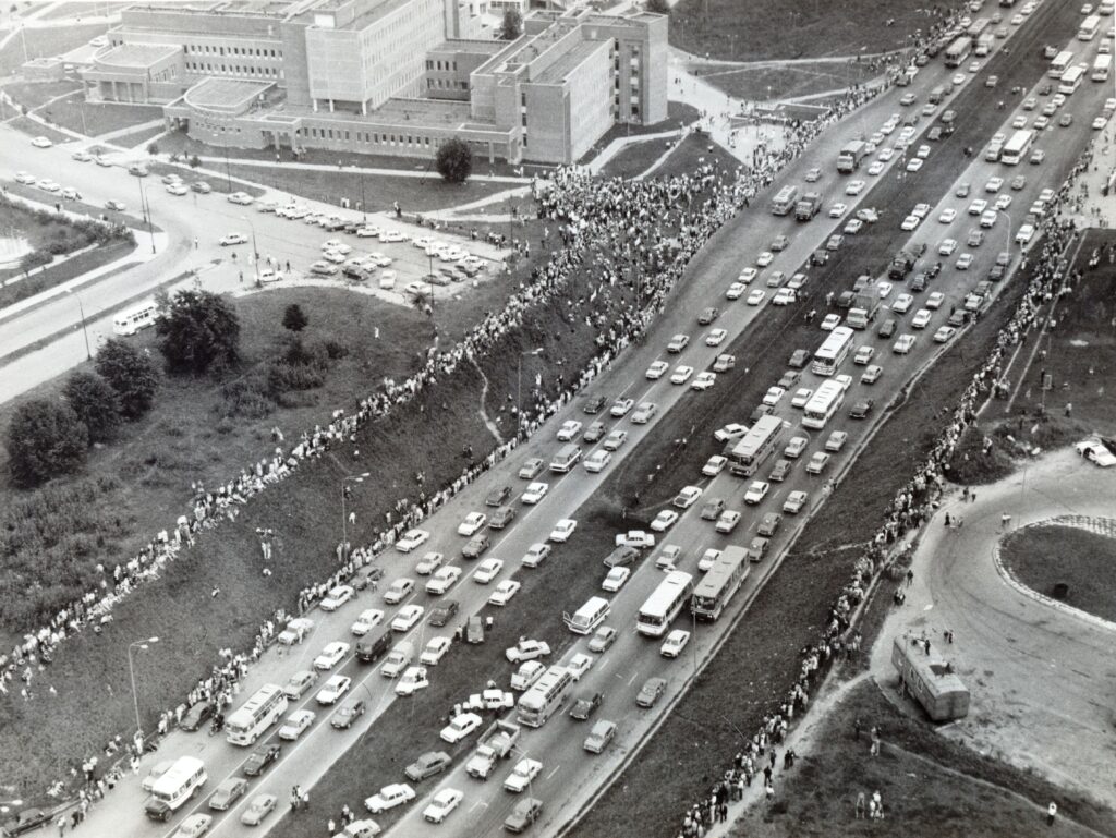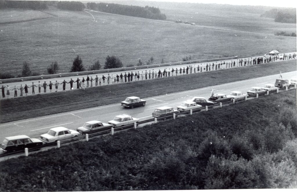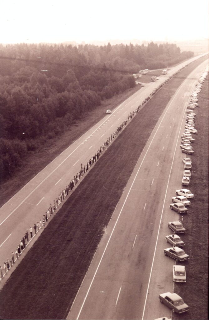 Ilgiausia rankomis susikibusių žmonių grandinė – daugiau kaip 600 km ilgio. Grandinę, nusitęsusią nuo Gedimino pilies bokšto Vilniuje iki Hermano bokšto Taline, keliu Vilnius–Ryga–Talinas, per tris Sovietų Sąjungos okupuotas ir aneksuotas valstybes – Lietuvą, Latviją ir Estiją 1989 m. rugpjūčio 23 d. sudarė apie 1,5 mln. žmonių. nusitęsusią nuo Gedimino pilies bokšto Vilniuje iki Hermano bokšto Taline per 3 Sovietų sąjungos okupuotas ir aneksuotas valstybes – Lietuvą, Latviją ir Estiją, keliu Vilnius–Ryga–Talinas. Ši „Baltijos kelio“ protesto manifestacija įvyko 50-mečio sukakties dieną kuomet Maskvoje (dabar – Rusija) 1939 m. rugpjūčio 23 d. Sovietų Sąjungos ir Vokietijos pasirašė nepuolimo sutartį ir slaptąjį Europos pasidalijimo protokolą, dabar vadinamą Molotovo–Ribentropo paktu, tapusį Baltijos valstybių okupacijos, aneksijos ir Antrojo pasaulinio karo pradžios susitarimo pagrindu.