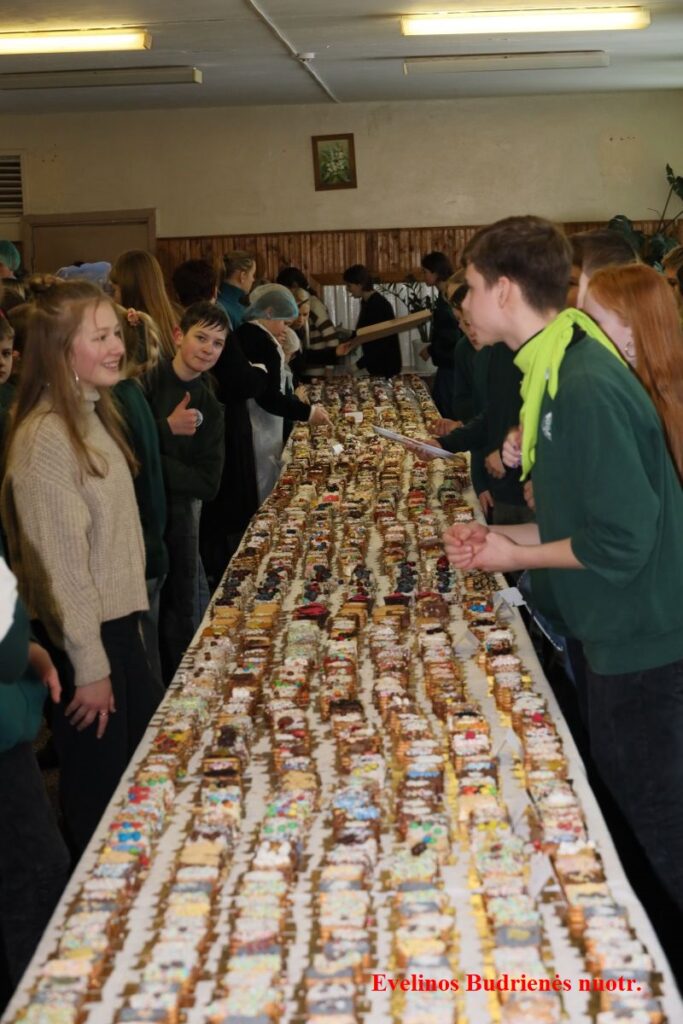 Ilgiausia sausaininių pyragaičių eilė – 128,12 m ilgio, 5 cm pločio – sudaryta iš 2560 pyragaičių arba 10240 sausainių „Du gaideliai“, perteptų glaistu, puoštų ir išdėliotų į ištisinę eilę Raseinių Viktoro Petkaus progimnazijos 853 bendruomenės narių 105 metinių mokyklos įkūrimo šventės proga įvykusioje 2024 m. sausio 10 d.