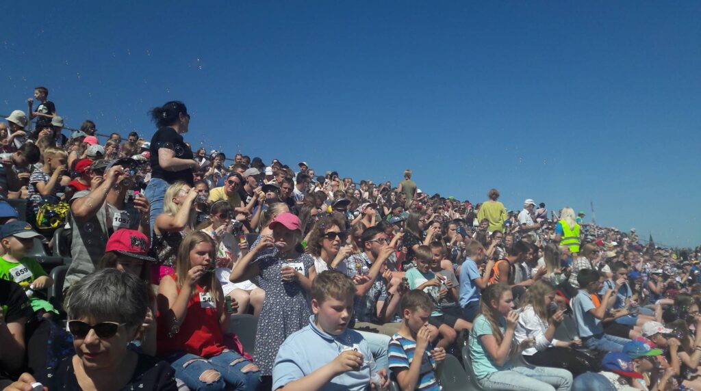 Masiškiausias muilo burbulų pūtimas – 1105 pūtėjai – paraginti Mažeikių rajono savivaldybės Visuomenės sveikatos biuro darbuotojų pūtė muilo burbulus miesto stadione pasaulinės dienos be tabako proga šventėje „Pūsk muilo burbulus, o ne tabako dūmus“ 2018 m. gegužės 31 d.