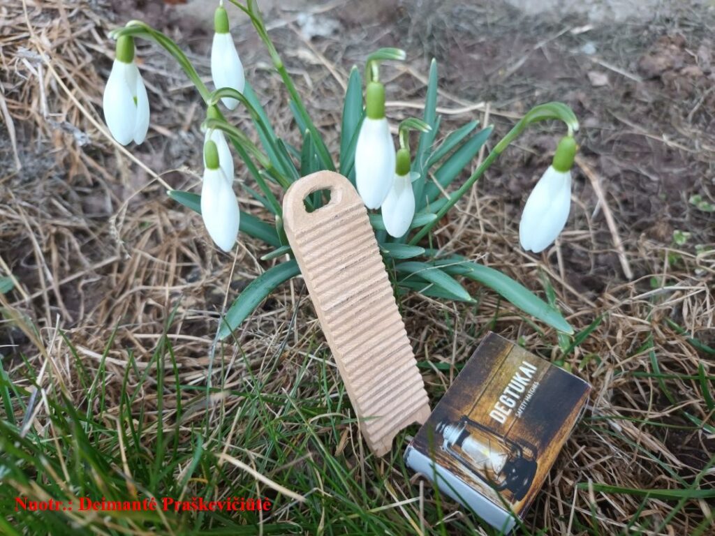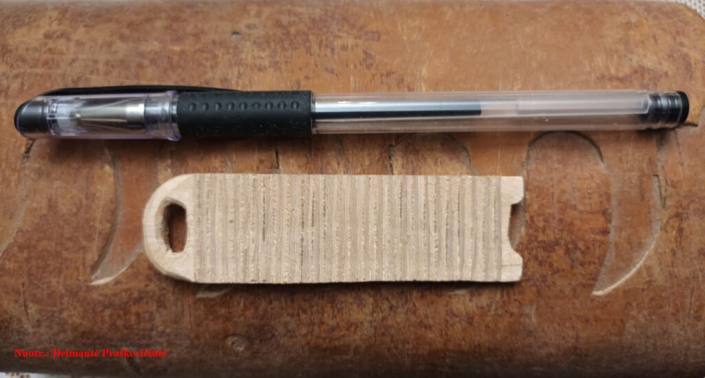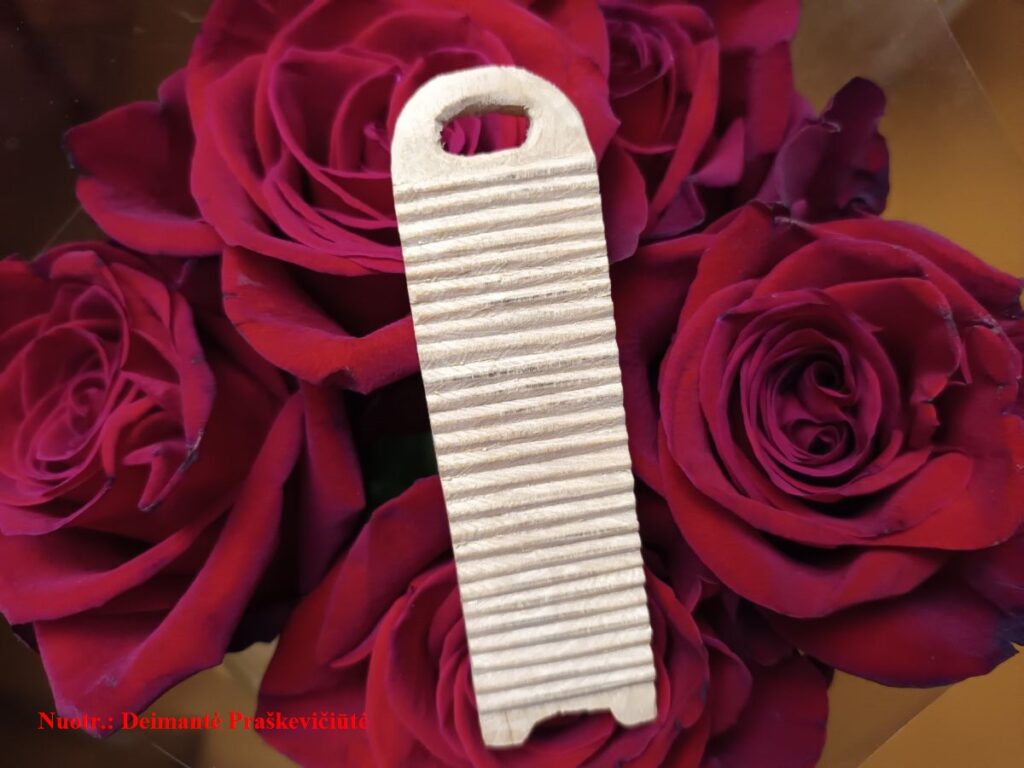 Mažiausias skalbinių trintuvas – 8,5 cm ilgio, 2,4 cm pločio, 0,5 cm storio – išdrožtas tautodailininko Artūro Narkevičiaus iš beržo medienos 2023 m.