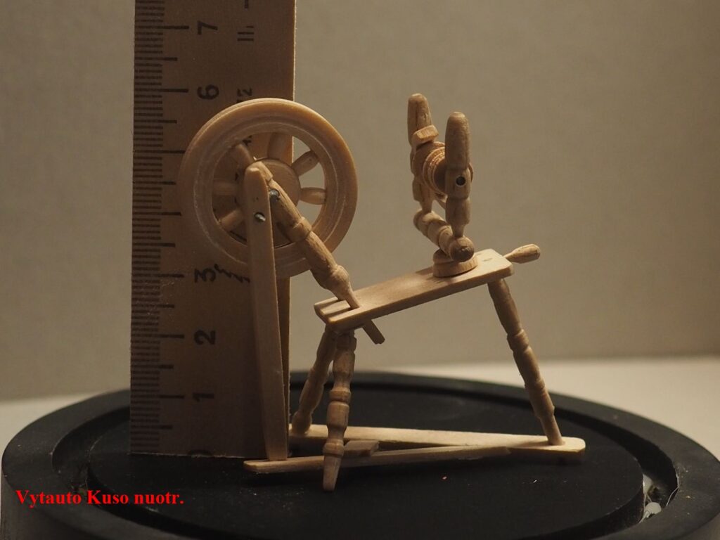 Mažiausias verpimo ratelis – 59 mm ilgio, 60 mm aukščio, 28 mm pločio – padarytas palangiškio dailininko ir poeto Vytauto Kuso 2023 m. iš beržo medienos.