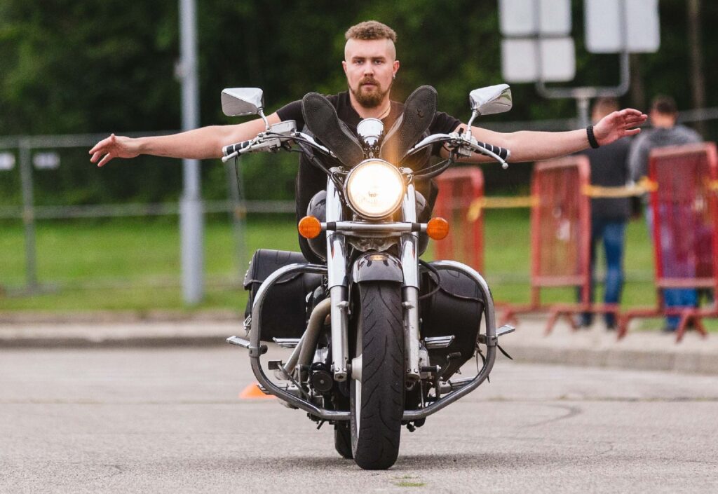 Tolimiausia ir ilgiausiai trukusi kelionė motociklu neliečiant vairo – 308,994 km ir 8 val. 29 min. – lyjant lietui nuvažiuota trakiškio Ryčio Rafaelio Mežonio Grigiškių stadione, Vilniaus mieste, 2020 m. rugpjūčio 30 d.